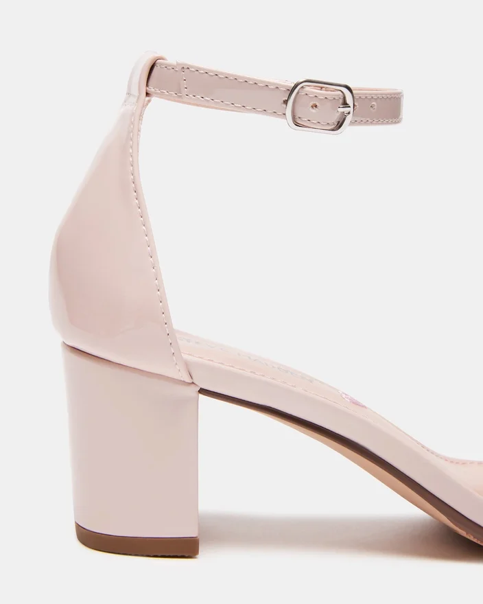 Carrson är en minimalistisk barnsandal med två remmar och låg blockklack för en bekväm och elegant stil.