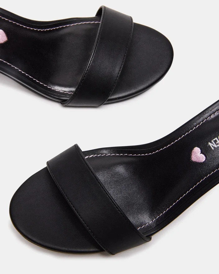 Carrson är en minimalistisk barnsandal med två remmar och låg blockklack för en bekväm och elegant stil.