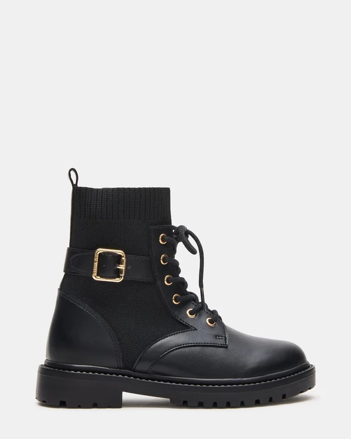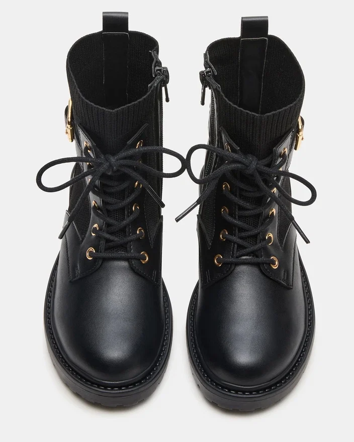 Kids’ Kya Black Lace-Up Ankle Stövlel är designad för hållbarhet och komfort och erbjuder pålitligt stöd för aktiva barn. Den robusta konstruktionen och den säkra snörningen garanterar en bekväm passform, vilket gör den idealisk för vardagsbruk och lek. Denna stövletter kombinerar praktisk design med en elegant svart finish som kompletterar alla barns garderob samtidigt som den ger långvarig användning.