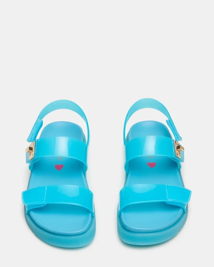 Kids’ Mona Jelly Blue är en pappa-inspirerad sandal som erbjuder både stil och komfort för din lilla. Slingback-ankelremmen och de övre remmarna ger en säker passform, medan flatform-designen tillför en trendig touch. Komforten garanterar att skon kan bäras hela dagen. Perfekt för alla små fashionistas.