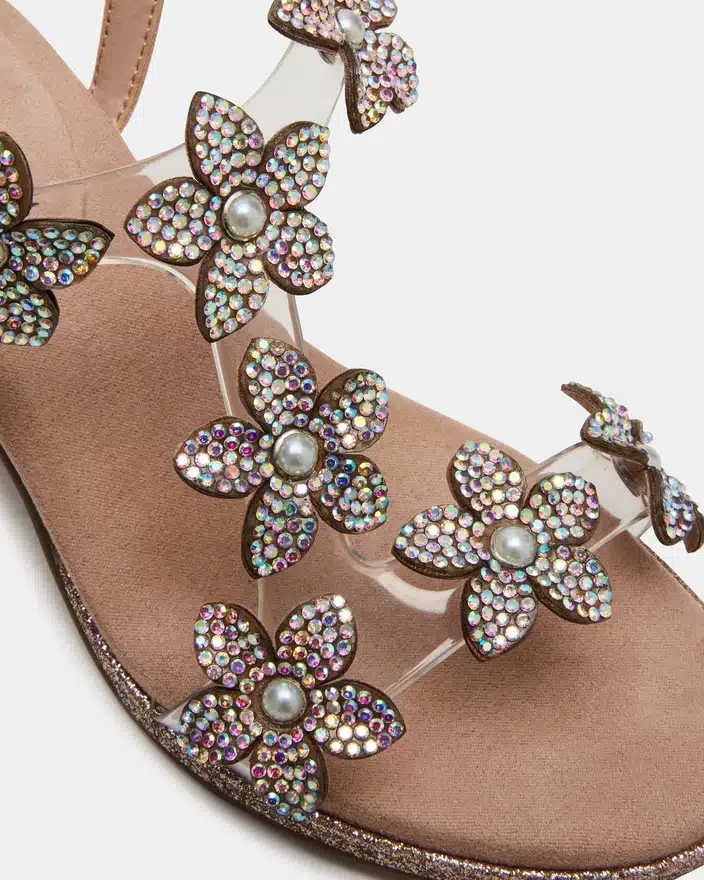 Kids’ Savvy är expertdesignad för komfort och stil och har remmar runt hälen samt en blockklack för stabilitet och stöd. Dekorationerna med strassblommor tillför en glittrande touch, vilket gör den till det perfekta valet för din lillas speciella tillfällen.