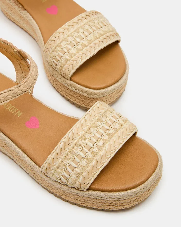 Barnmodellen Kiko Natural kombinerar komfort med modern stil i en mångsidig platåsandal. Denna modell är tillverkad av naturlig raffia och har en stödjande kilklack som ger stabilitet och höjd, medan en justerbar ankelrem säkerställer en säker passform för aktiv lek. Det strukturerade materialet ger andningsförmåga för användning i varmt väder, vilket gör den till ett perfekt val för avslappnade utflykter och vardagsäventyr.