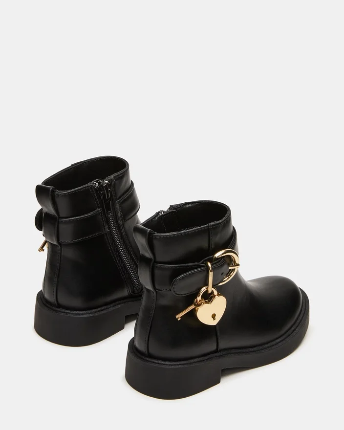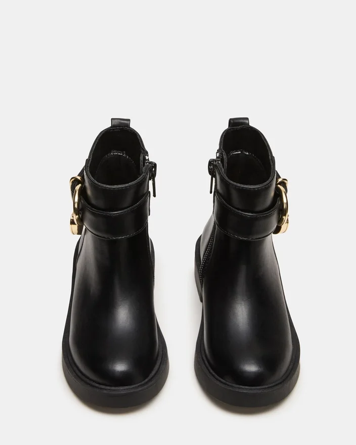 Dessa svarta ankelstövlar för småbarn kombinerar den klassiska Chelsea-silhuetten med en slitstark grov sula för bättre grepp och stabilitet. Designade för aktiva barn, garanterar den här slip-on-modellen enkel påtagning samtidigt som den ger stöd för fotleden och komfort hela dagen. Tillverkade av högkvalitativa material är de perfekta för vardagens äventyr och kombinerar stil och funktion på ett sömlöst sätt.