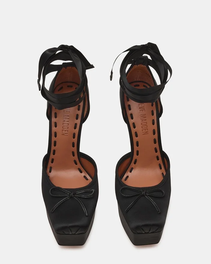 Lyft din stil med Listen Black Satin-balettklackskor, med platåsula och en delikat snörningsdesign inspirerad av klassiska balettskor. Dessa klackskor är skapade för att ge både elegans och stabilitet och framhäver din silhuett samtidigt som de garanterar ett säkert fotfäste. Deras unika finish ger en lyxig touch, vilket gör dem perfekta för sofistikerade tillfällen eller en minnesvärd utekväll.