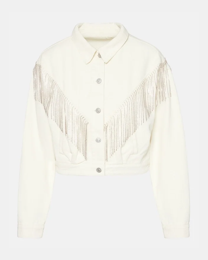 Canyon-jeansjackan är skickligt tillverkad och ett måste i varje garderob. Denna korta jeansjacka har vackra fransar med strass som ger en touch av Western-glamour, medan knäppningen med knappar garanterar en perfekt passform.