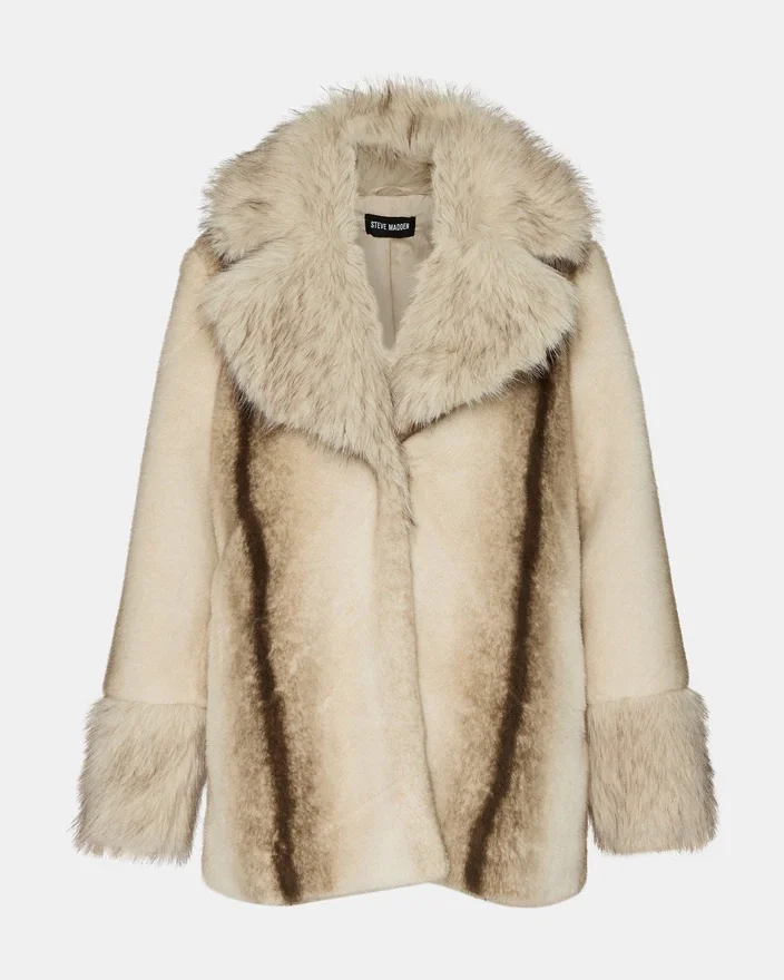 Carmelina Coat Multi har en långärmad design tillverkad av lyxigt fuskpäls, som erbjuder både värme och stil. Dess mångfärgade mönster tillför en distinkt, fashionabel touch som är idealisk för att lyfta vilken vintergarderob som helst. Denna jacka kombinerar mjuk komfort med expertisk skrädderi, vilket gör den till ett sofistikerat val för lager-på-lager-klädsel i kallt väder.