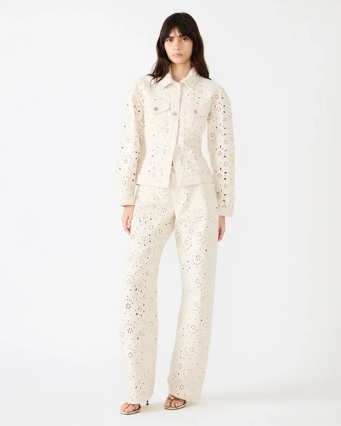 Henrietta-jackan Sea Mist kombinerar tidlöst denimhantverk med moderna designdetaljer. Denna långärmade jacka med knappar har en raffinerad ögondesign över hela plagget, vilket ger den klassiska silhuetten visuellt intresse och struktur. Jackan har en mjuk, mångsidig nyans som enkelt matchar din vardagsgarderob. Den är tillverkad av högkvalitativ denim och erbjuder hållbarhet och struktur samtidigt som den har en bekväm passform. Henrietta är perfekt för lager-på-lager-stilar under alla årstider och övergår smidigt från vardagsstil till eleganta looks, vilket gör den till ett måste i varje stilmedveten garderob. Bomull