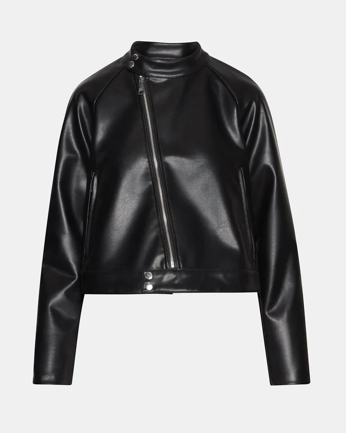 Jett-jackan i svart är en elegant långärmad jacka i imitationsläder, designad med en säker dragkedja för en strömlinjeformad silhuett. Det högkvalitativa materialet ger intryck av äkta läder samtidigt som det är lättskött och slitstarkt. Denna jacka är perfekt att bära i lager och ger en sofistikerad touch till vilken outfit som helst, med en balans mellan modern stil och funktionell design.