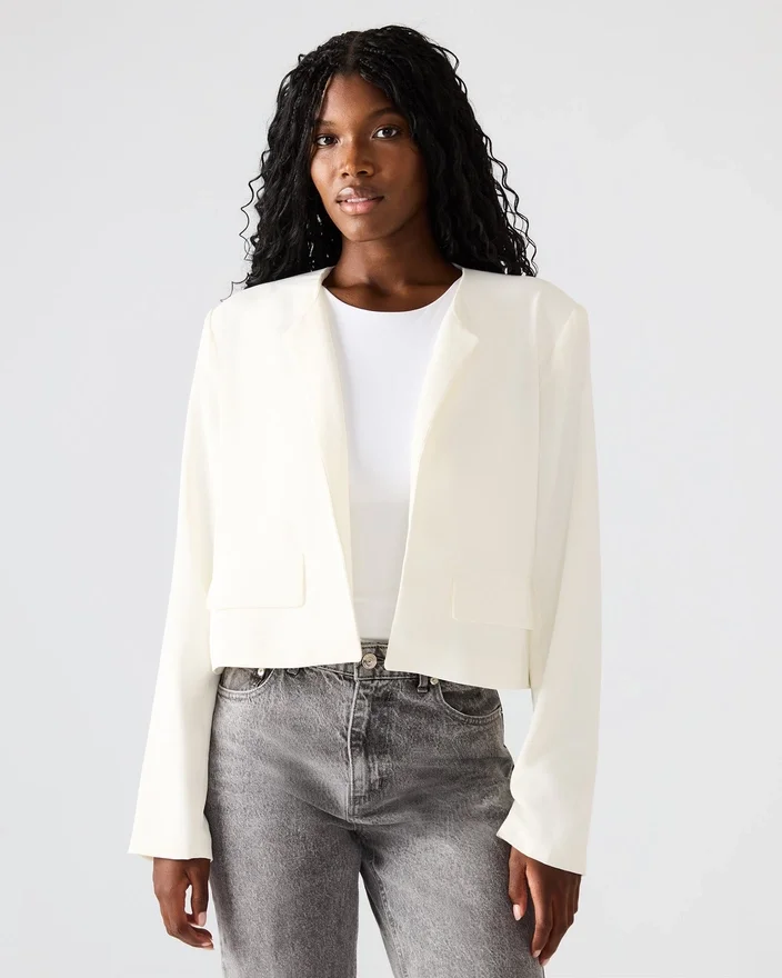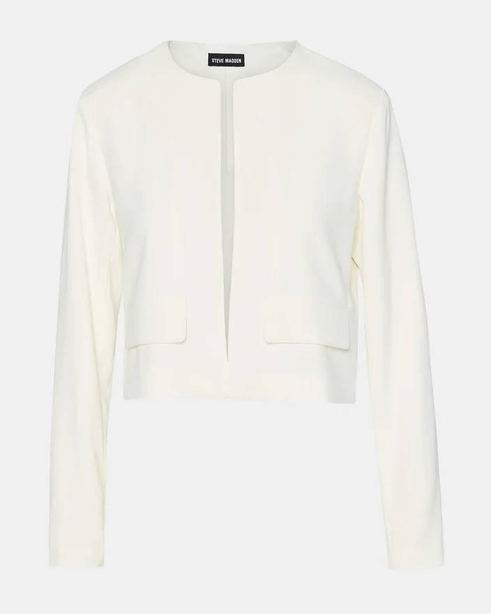 Serenea-blazern är tillverkad med långa ärmar och en öppen front, vilket ger en elegant och sofistikerad look. Denna blazer är perfekt för alla tillfällen och ger en avslappnad stil till vilken outfit som helst. Förbättra din garderob med detta tidlösa och mångsidiga plagg.