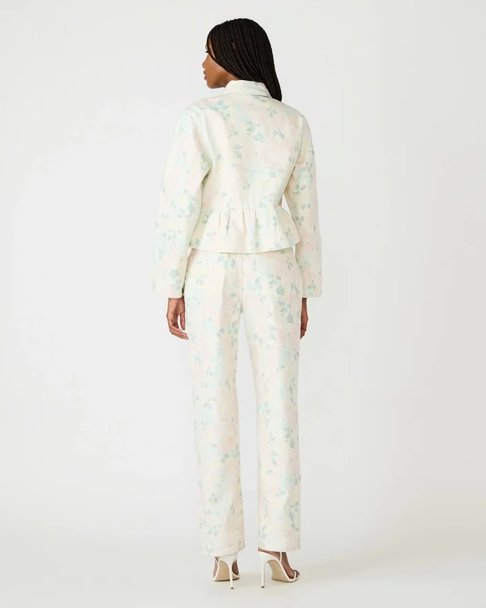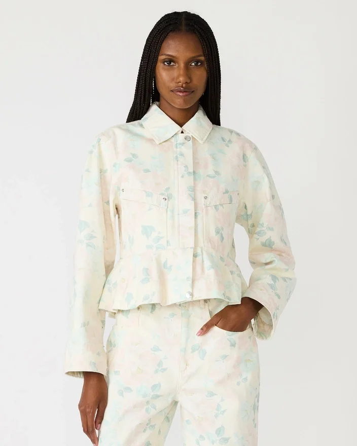 Sloan blommig jacka i persikabeige är en långärmad jacka designad för att komplettera det matchande setet och ge en sammanhängande och stilfull look. Denna jacka är skapad för dig som uppskattar koordinerad mode och kombinerar funktionell täckning med ett distinkt mönster, vilket gör den idealisk för lager-på-lager-stilar eller som ett statement-plagg i din garderob.