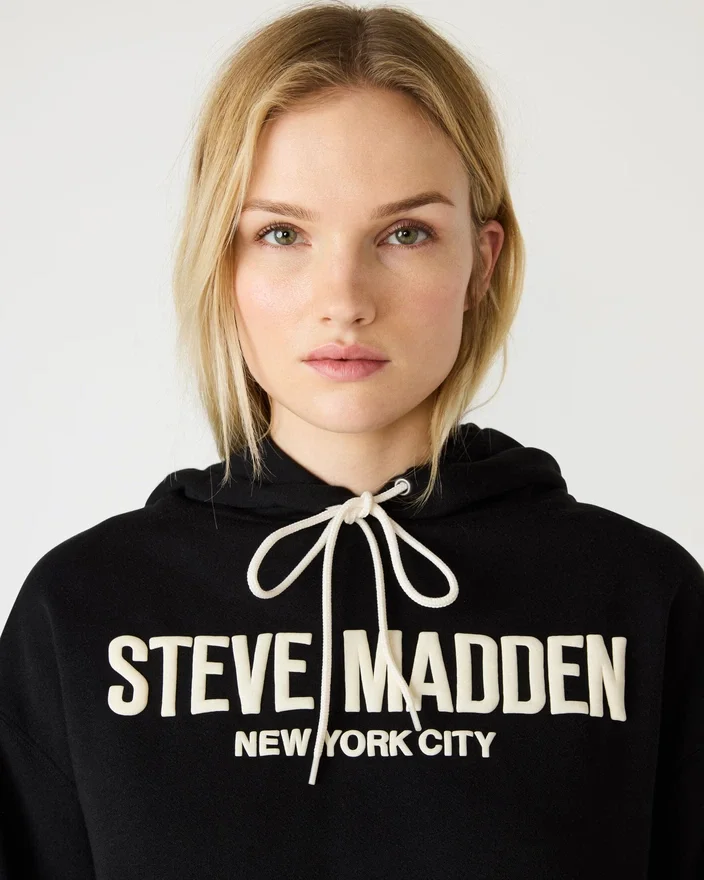 Sm Logo Hoodie Black ger en diskret sofistikation med en raffinerad approach till vardagsstilen. Tillverkad med förstklassig konstruktion, har denna långärmade basplagg det ikoniska Steve Madden-logotypen som en subtil blickfång, vilket gör den tillräckligt mångsidig för att bäras i lager eller som en fristående stil. Den avslappnade passformen ger bekväm rörelsefrihet samtidigt som den bibehåller en elegant silhuett, perfekt för övergången från helgens ärenden till avslappnade sociala sammanhang.