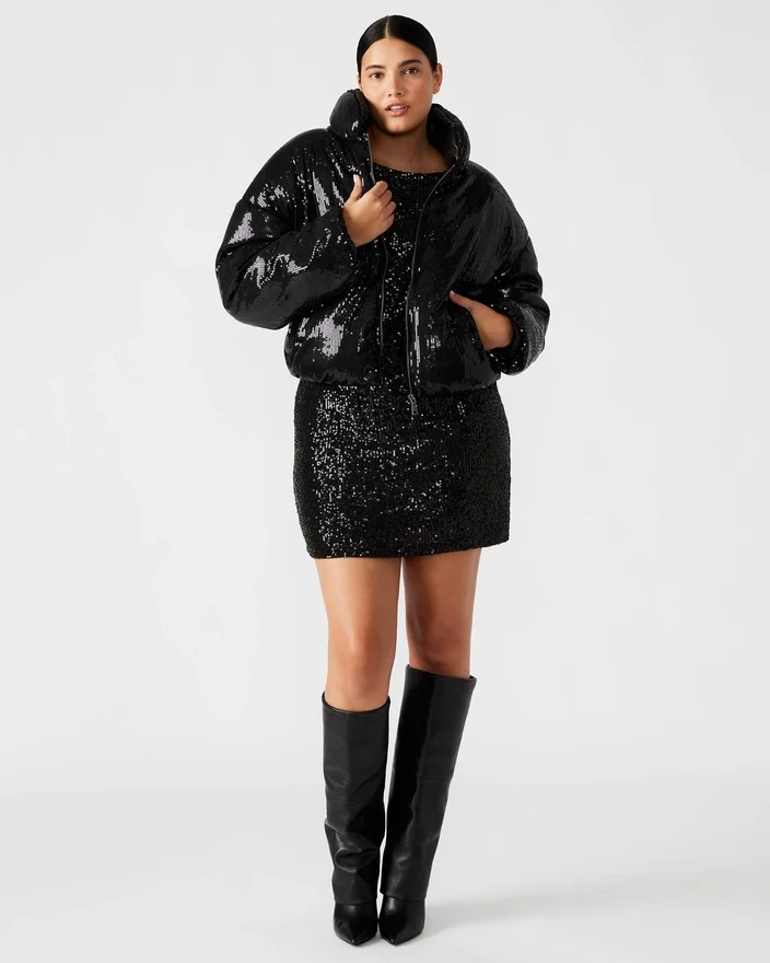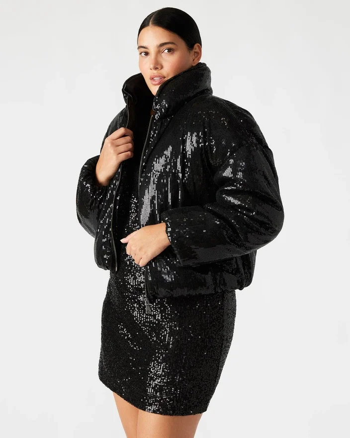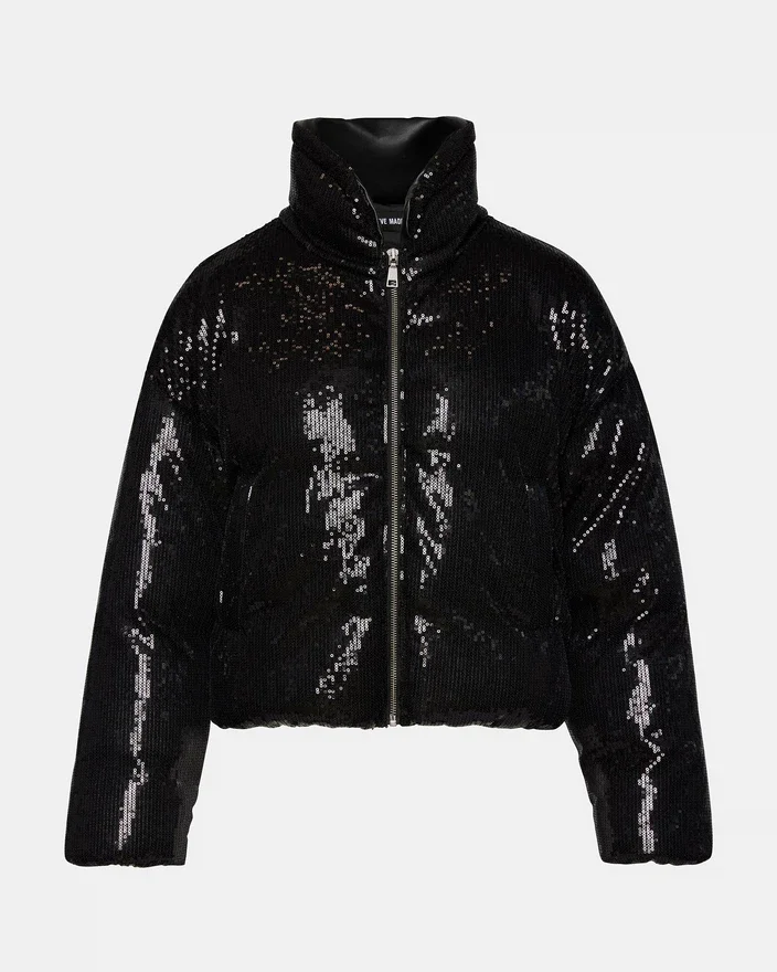 Denna Stratto-pufferjacka med paljetter har dragkedja och långa ärmar. Den stilfulla designen och de högkvalitativa materialen ger både värme och ett modernt utseende. Med en smickrande passform och mångsidig design är denna jacka ett måste för alla modeentusiaster.