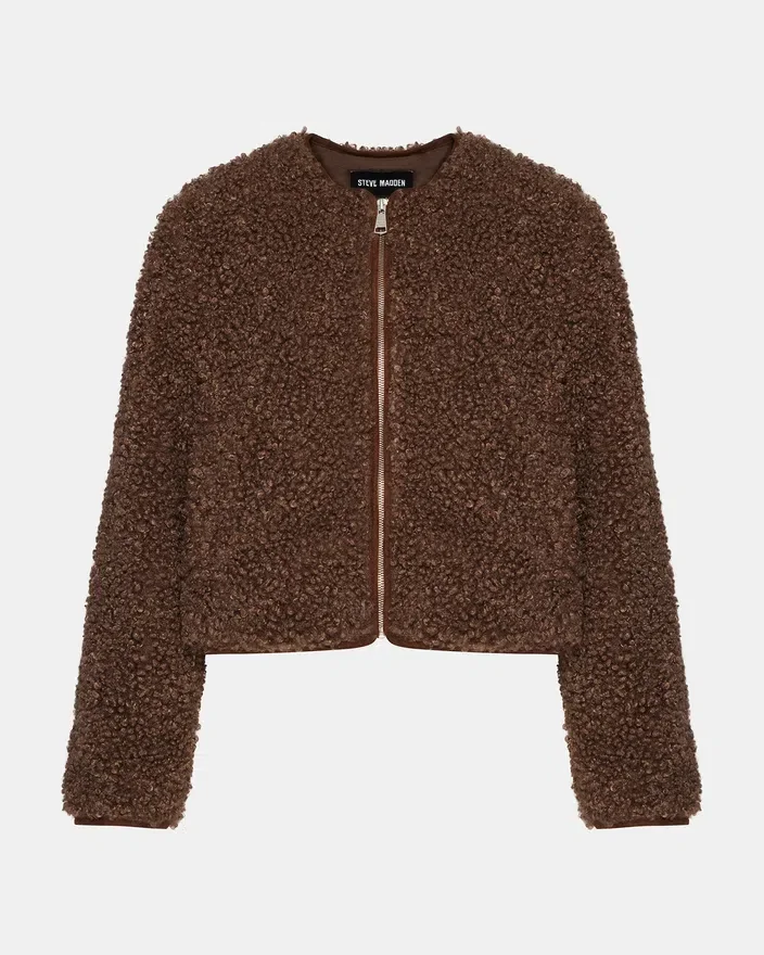 Teddy är en sherpajacka med dragkedja fram och kragefri design. Håll dig varm och snygg under de kallare månaderna med denna stilfulla och praktiska jacka. Tillverkad av högkvalitativa material för ultimat komfort.