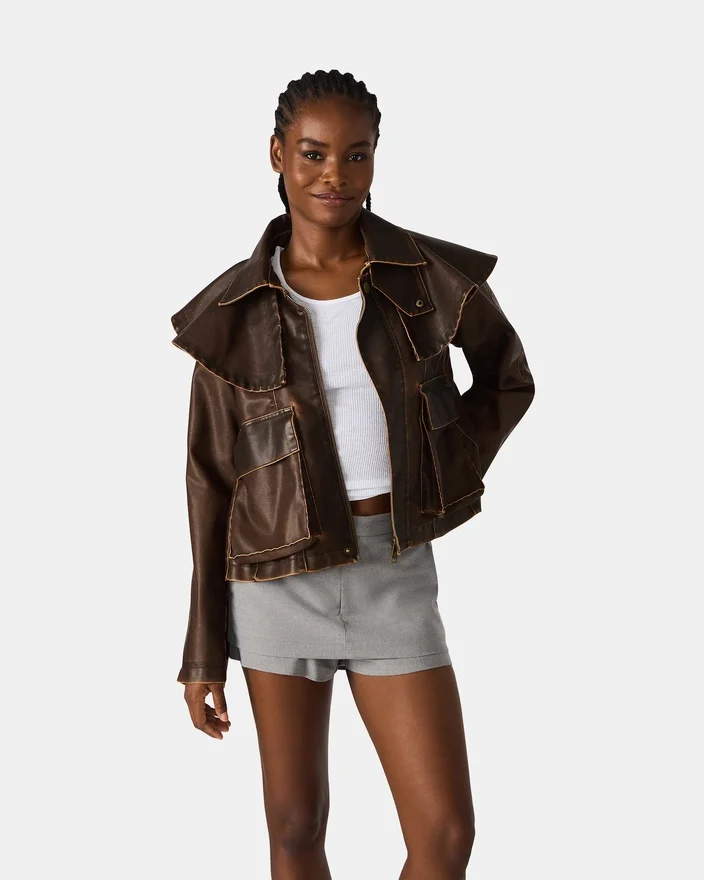 Förbättra din yttergarderob med Varvara-jackan i chokladbrunt, tillverkad av mjukt konstläder för en sofistikerad look. Denna långärmade jacka har en elegant dragkedja och en strukturerad krage, vilket ger en modern touch med tidlös charm. Den är perfekt för lager-på-lager-stilen, och dess rena linjer och rika färgton gör den till ett mångsidigt plagg som enkelt kompletterar både vardagsstil och eleganta outfits. Den är slitstark och stilfull, och ger värme samtidigt som den bibehåller en strömlinjeformad silhuett för expertnivå inom mode.