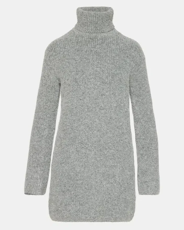 Abbie-tröjklänningen är skickligt tillverkad med en polokrage och utsvängda ärmar och erbjuder en avslappnad men ändå stilfull passform. Det mjuka borstade materialet ger värme och komfort, vilket gör den till den perfekta miniklänningen för svalare väder. Förbättra din garderob med denna mångsidiga och eleganta tröjklänning.