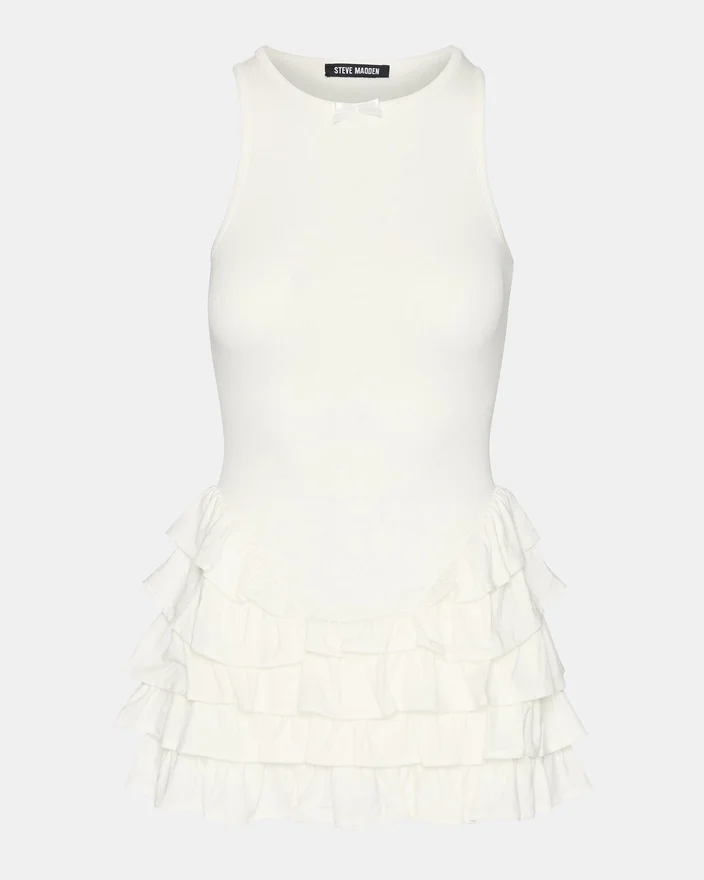 Clea-klänningen är en mångsidig miniklänning som dras över huvudet och har en charmig volangkant nedtill. Denna klänning är designad för att vara bekväm att bära och passar perfekt för alla tillfällen. Med sin stilfulla silhuett och lekfulla detaljer erbjuder den en unik blandning av komfort och mode. Förbättra din garderob med detta måste-ha-plagg.