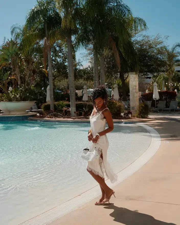 Danna-klänningen i krämfärg kombinerar avslappnad elegans med moderna designdetaljer. Denna ärmlösa midilånga slipklänning har en delikat spetskant som ger en raffinerad struktur, medan den asymmetriska skärningen skapar visuellt intresse och rörelse. Justerbara axelband säkerställer en anpassad passform för alla kroppstyper.