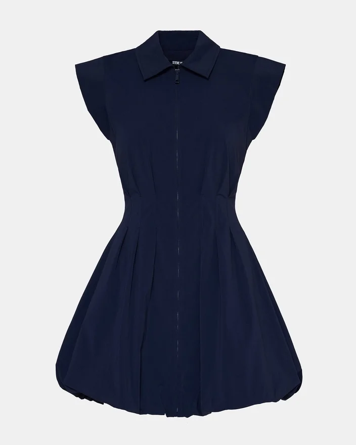 Dyanne-klänningen i marinblått är en stilfull miniklänning med dragkedja fram och bubbelkant i tekniskt nylon. Med en krage är denna klänning perfekt för alla tillfällen och ger en modern, chic look. Tillverkad av högkvalitativa material erbjuder den både komfort och hållbarhet. Gör dig redo att vända huvuden och sticka ut i denna måste-ha-klänning.<!–