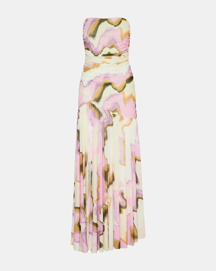 Denna Kerrie-klänning i flera färger förenar avslappnad elegans med modern sofistikation. Den flödande silhuetten faller vackert medan sidoslitsen tillför rörelse och visuellt intresse, vilket skapar en smickrande balans mellan täckning och charm. Perfekt för kvällsevenemang, semesterkläder eller alla tillfällen som kräver en raffinerad stil. Den axelbandslösa halsringningen erbjuder mångsidighet för att skapa lager-på-lager-looker eller visa upp iögonfallande smycken, medan det flödande tyget garanterar bekväm och graciös passform hela dagen eller kvällen.