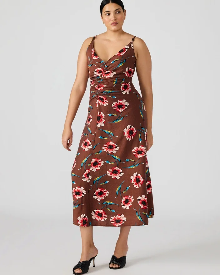 Ge din garderob en elegant touch med Monroe-klänningen. Denna flödande maxiklänning med blommönster har en V-ringning och pärlbroderade axelband som ger din look en lyxig känsla. Dragkedjan i ryggen garanterar en perfekt passform, vilket gör klänningen både snygg och bekväm.