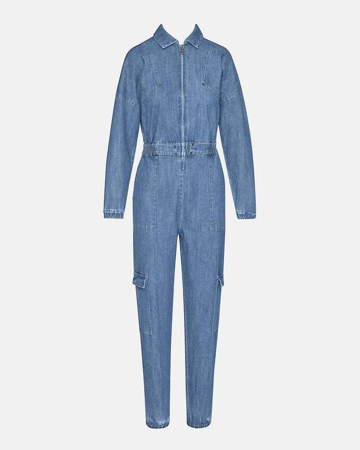Trista-overallen är skickligt tillverkad för tidlös stil och bekvämlighet och är ett måste i din garderob. Denna långärmade overall har praktiska sidfickor och en krage för extra bekvämlighet. Dragkedjan fram ger en modern touch till detta klassiska denimplagg.