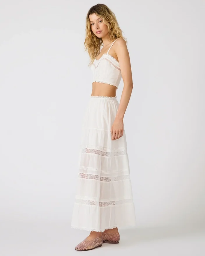 Elisse Top Antique har en elegant hjärtformad halsringning som smickrar dekolletaget, medan de fina spetsdetaljerna tillför en romantisk elegans. Den korta silhuetten ger en modern tolkning av vintageinspirerad design, perfekt att bära i lager eller ensam.