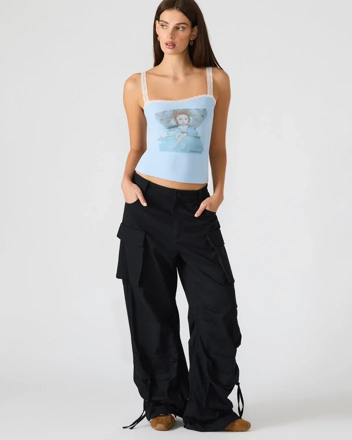 Love Goldie Tank Surf Blue-toppen har spetskantade axelband som ger en elegant, feminin touch i kombination med ett distinkt grafiskt mönster som gör den unik. Denna linne är skapad för en bekväm passform och kombinerar stil och individualitet, vilket gör den till ett mångsidigt val för både vardagsstil och eleganta looks i varmt väder.