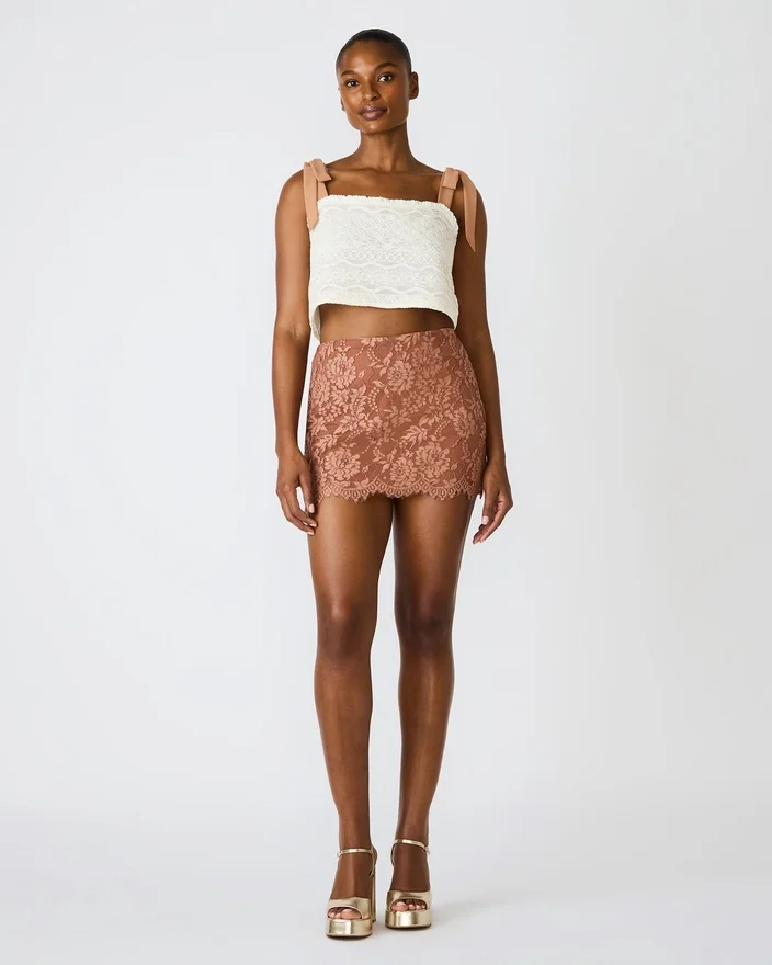 Lyft din kvällsstil med Cindi-kjolen Mocha Heather. Denna kjol har ett heltäckande spetsmönster. Den erbjuder en koordinerad, trendig ensemble som är perfekt för speciella tillfällen eller utekvällar. Kjolens lyxiga finish och flödande, iögonfallande stil, samtidigt som den är bekväm att bära.