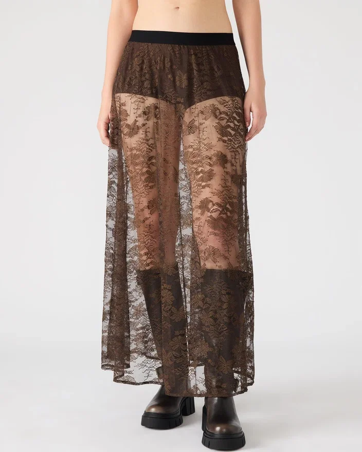 Förhöj din garderob med Gisela-kjolen, en maxilång, genomskinlig spetskjol som kombinerar elegans med modern sofistikation.