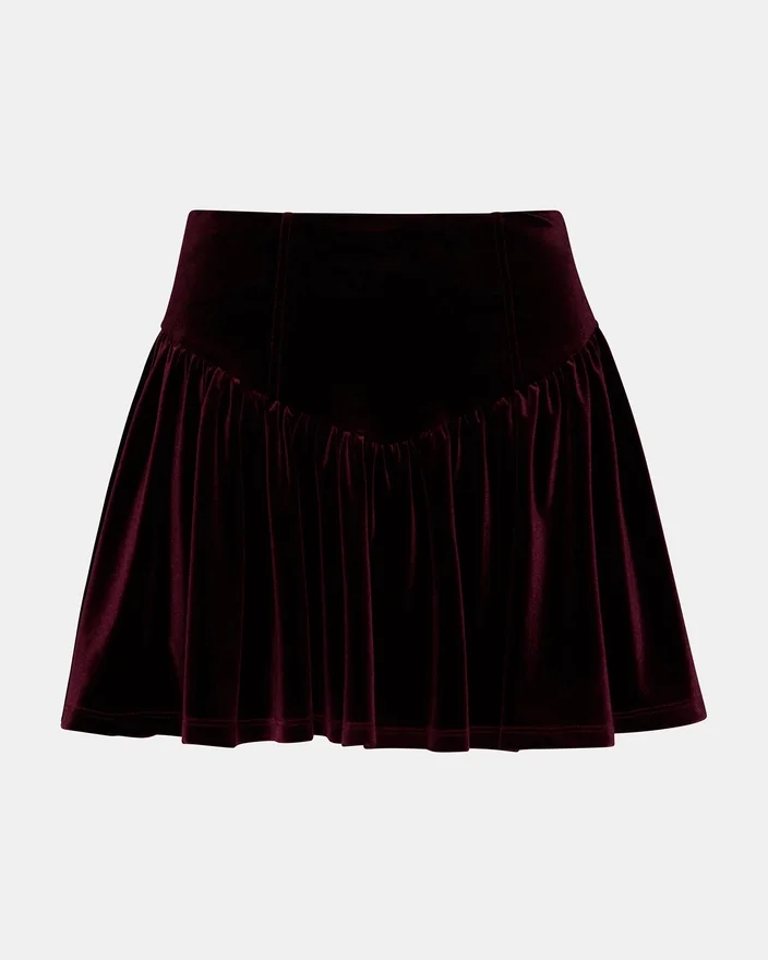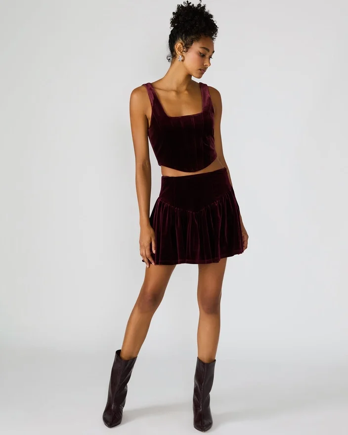 Förhöj din garderob med Jayla-kjolen i vinrött, en flödande minikjol i sammet designad för enkel elegans. Denna plagg passar perfekt ihop med det matchande setet och erbjuder en sammanhängande och lyxig look som är perfekt för speciella tillfällen eller stilfull vardagsbeklädnad.