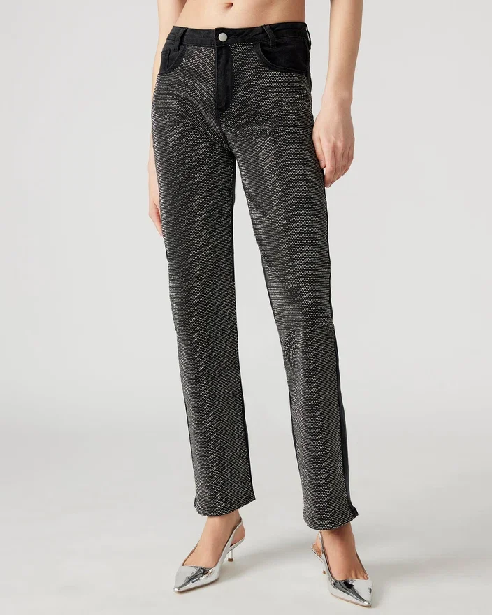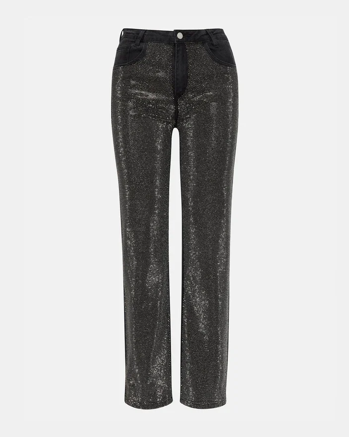 Jesse Jeans är de perfekta jeansen med raka ben och dekorationer, prydda med vackra strassstenar på framsidan. Lyft din stil med dessa unika och iögonfallande byxor, perfekta för att göra ett statement.<!–