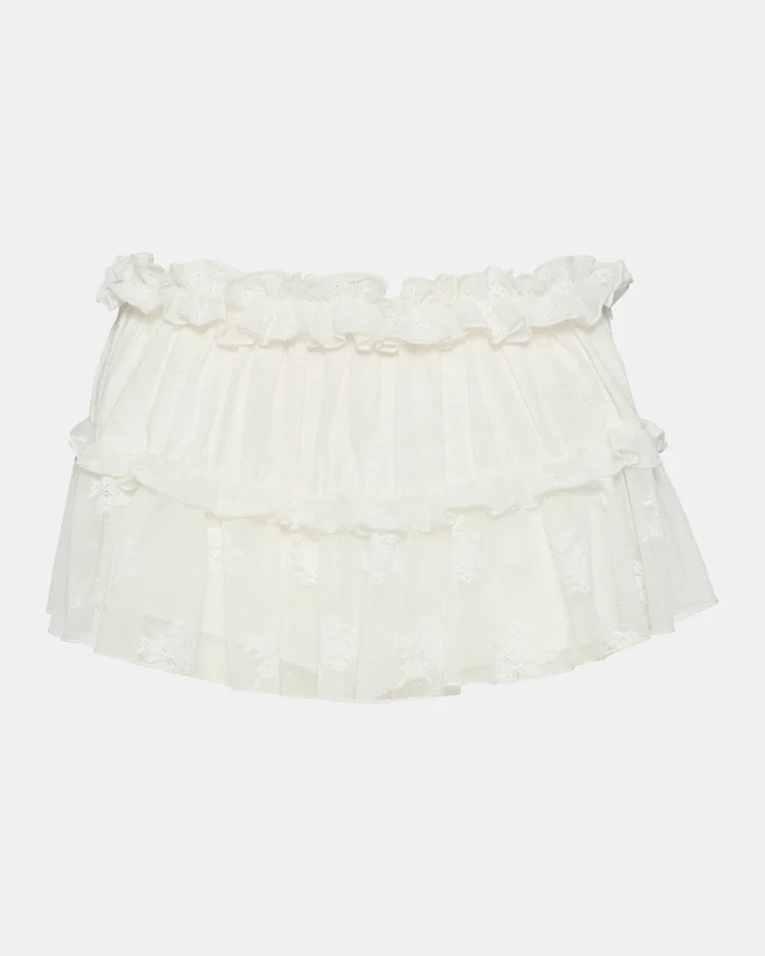 Leta-kjolen Snow White kombinerar delikata volangdetaljer i spets med en modern silhuett, vilket skapar ett mångsidigt plagg för en elegant vardagsstil. Denna minikjol har en raffinerad dragkedja i sidan som garanterar en säker och elegant passform. Den intrikata spetskonstruktionen tillför textur och visuellt intresse, medan färgvalet erbjuder tidlös charm och gör den lätt att matcha med din befintliga garderob.