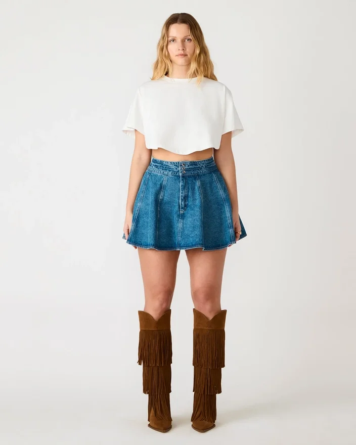 Lilliany-kjolen Aruba Blue erbjuder modern stil med praktiska designelement. Denna minikjol är tillverkad i krispig denim och har raffinerade veck som skapar rörelse och visuellt intresse. Funktionella framfickor ger vardaglig användbarhet, medan knäppningen säkerställer en säker passform. Kjolen är mångsidig och kan kombineras med både basplagg och statement-plagg.