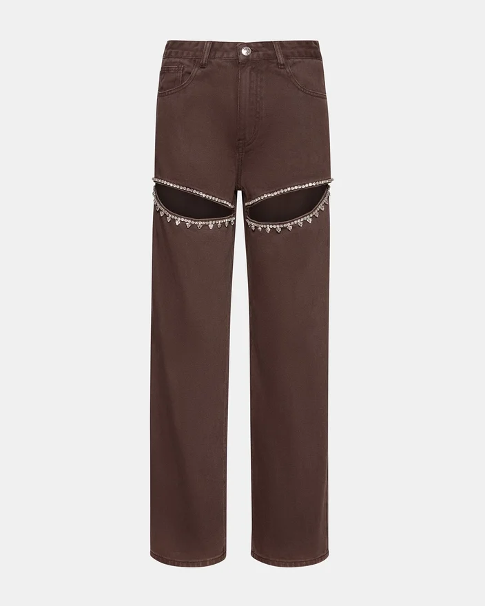 Taylor-jeansen ger en stilfull twist på en klassisk design. Med sin vida passform erbjuder dessa jeans komfort och mångsidighet, medan de intrikata utskärningarna med strass på låren tillför en touch av glamour.