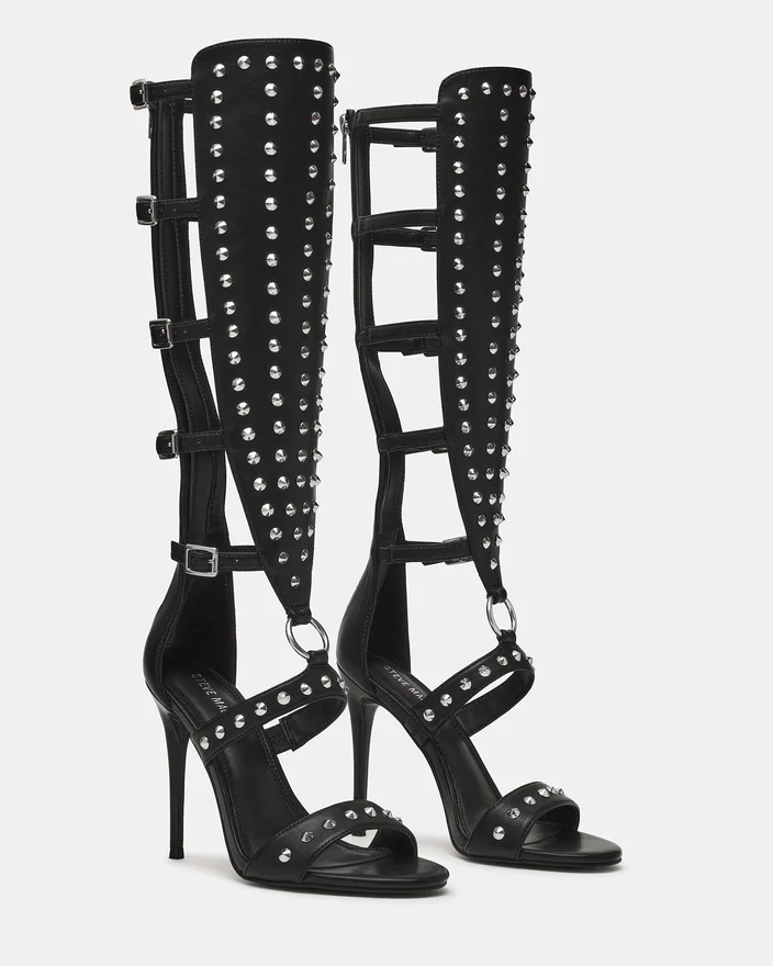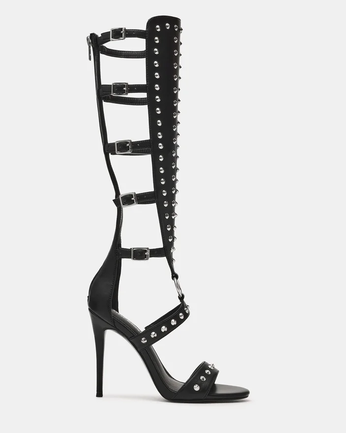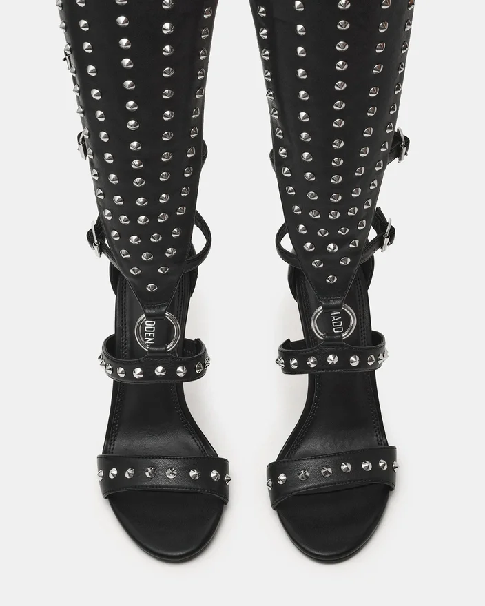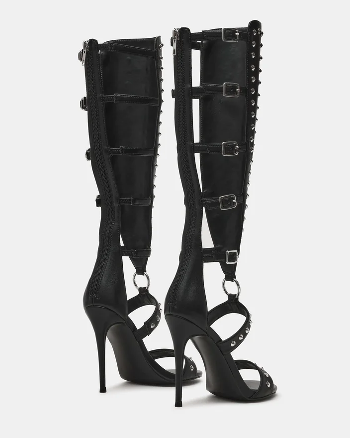 Composure Black Studs ger en sofistikerad kant med en elegant klackskor med remmar. Denna stilettmodell har spännen som ger en anpassad passform samtidigt som de lyfter din look med arkitektonisk precision. Detaljerna tillför en modern touch till en tidlös klackskor, vilket gör den till ett måste för dig som vill dra uppmärksamheten till dig med en raffinerad stil. Perfekt för kvällstillställningar eller när du vill göra ett djärvt intryck.