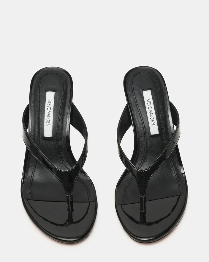 Faroh Black Patent utstrålar raffinerad elegans med sin rundade tå och graciösa klack. Denna mångsidiga modell passar lika bra till vardagsstil som till festliga tillfällen och erbjuder ett sofistikerat alternativ till traditionella skor. Tåremmen ger en säker men samtidigt luftig passform, medan den mjukt rundade tån och den upphöjda klacken skapar en smickrande benlinje.