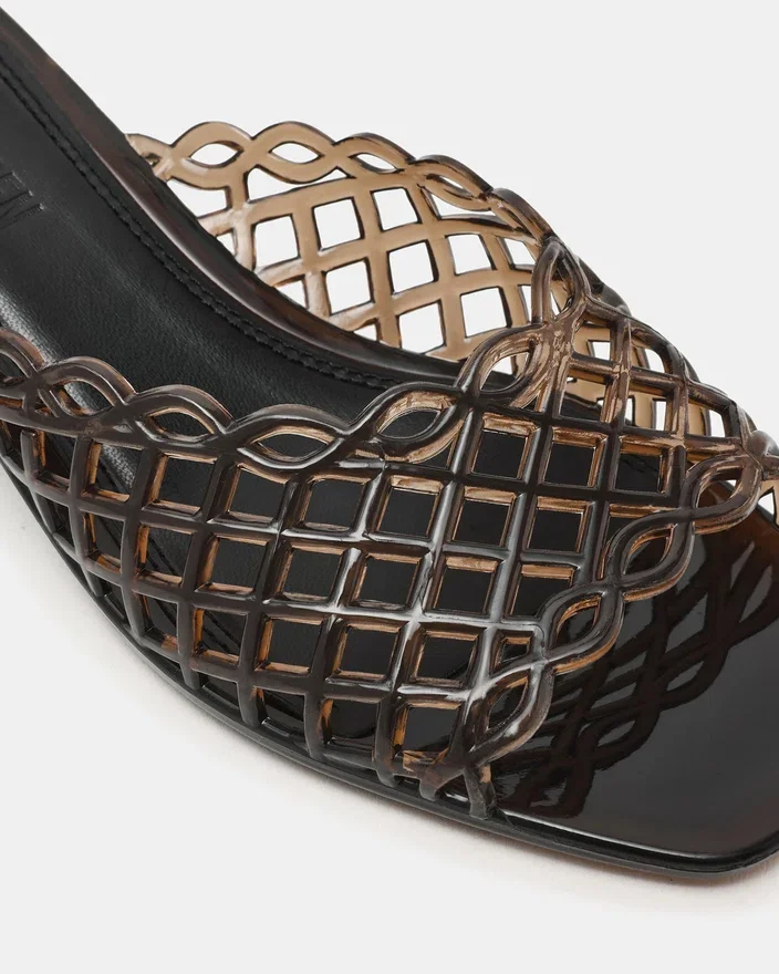 Ginger Smoke har en vävd remdesign som ger en raffinerad elegans genom sin silhuett och praktiska låga klack. Den strukturerade tåformen ger en modern estetik samtidigt som den bibehåller komforten för att kunna bäras hela dagen. Den delikata klackhöjden ger en subtil höjd utan att kompromissa med gångkomforten, vilket gör den till ett perfekt val för både professionella och vardagsstilsammanhang. En mångsidig basplagg som smidigt passar in i hela din garderob.