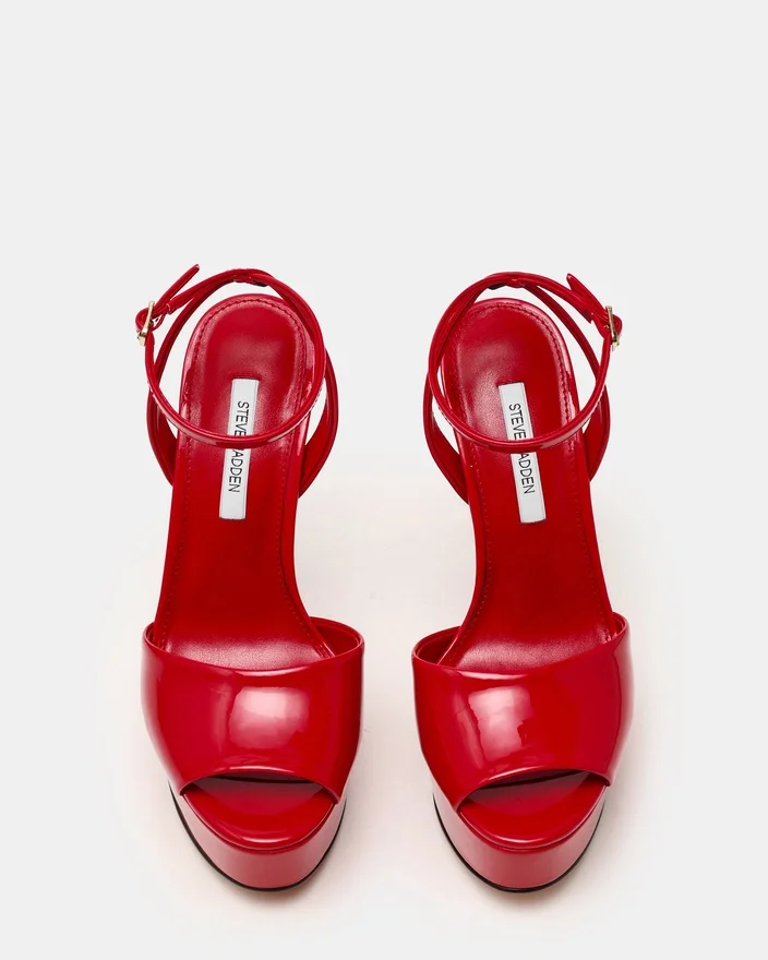 Jezzica Red Patent kombinerar en iögonfallande stilettklack med en säker ankelrem för raffinerad elegans och stabilitet. Denna platåskor skapar en polerad, iögonfallande look. Perfekt för tillfällen som kräver sofistikerad stil och självsäker utstrålning.
