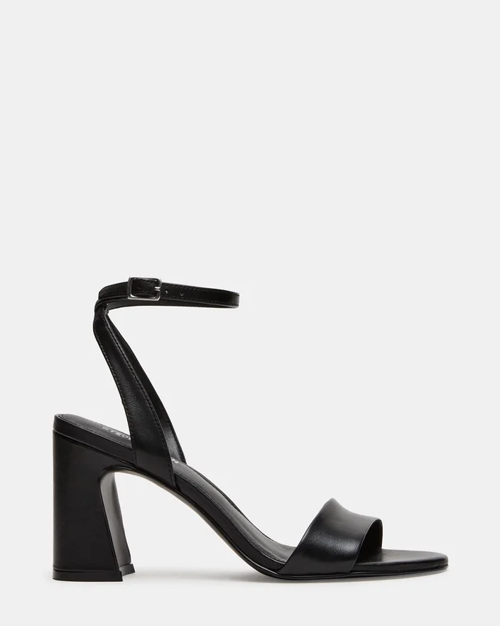 Larah Black Leather har en rundad tå och en stadig blockklack, vilket ger både stil och stabilitet för att kunna bäras hela dagen. Den säkra ankelremmen garanterar en bekväm, fast passform som ökar självförtroendet vid varje steg. Denna design balanserar elegans och praktiskhet, vilket gör den till ett mångsidigt val för olika tillfällen.