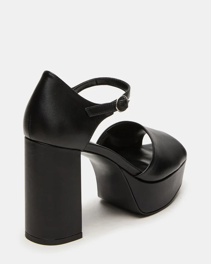 London Black Leather har en stadig platåskor i kombination med en blockklack för ökad stabilitet och komfort. Den säkra ankelremmen garanterar en säker passform, vilket gör dessa klackskor till ett sofistikerat val för hela dagen. Tillverkade med omsorg om detaljerna kombinerar de stil och praktiskhet på ett sömlöst sätt.