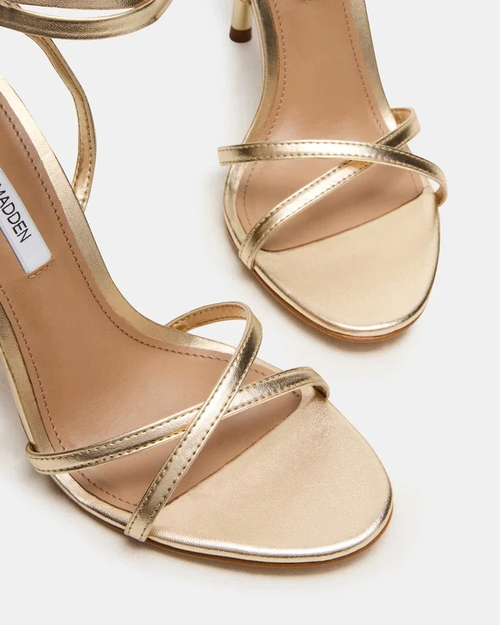 Neri Champagne kombinerar minimalistisk design med raffinerat hantverk, med delikata remmar som håller fast foten samtidigt som de bibehåller en visuell elegans. Stilettklacken ger en självsäker höjd och en förlängande silhuett, kompletterad med en rund tå som garanterar komfort och mångsidighet. Denna klack representerar sinnebilden av tidlös elegans för alla tillfällen.