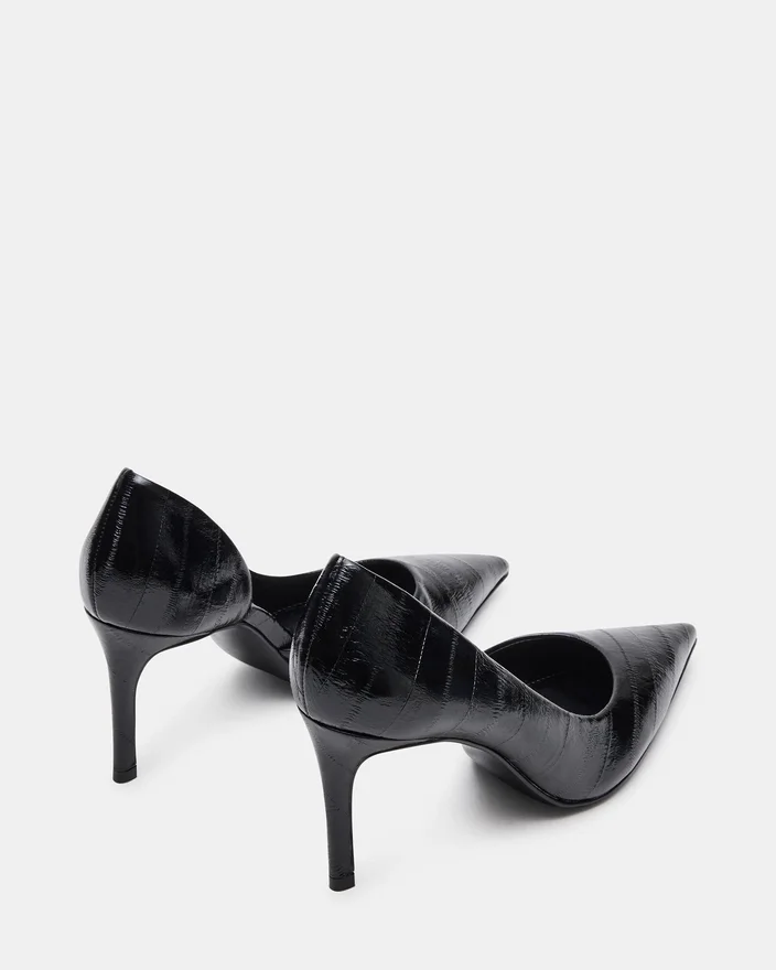 Nula Black Eel har en elegant spetsig tå i kombination med en smal stilettklack, vilket ger en elegant silhuett som förbättrar hållningen och förlänger benlinjen. Denna pump är skapad för både stil och sofistikation och kombinerar ett djärvt zebramönster med en raffinerad konstruktion, vilket gör den till ett perfekt val för en elegant och självsäker look i professionella sammanhang eller på kvällen.