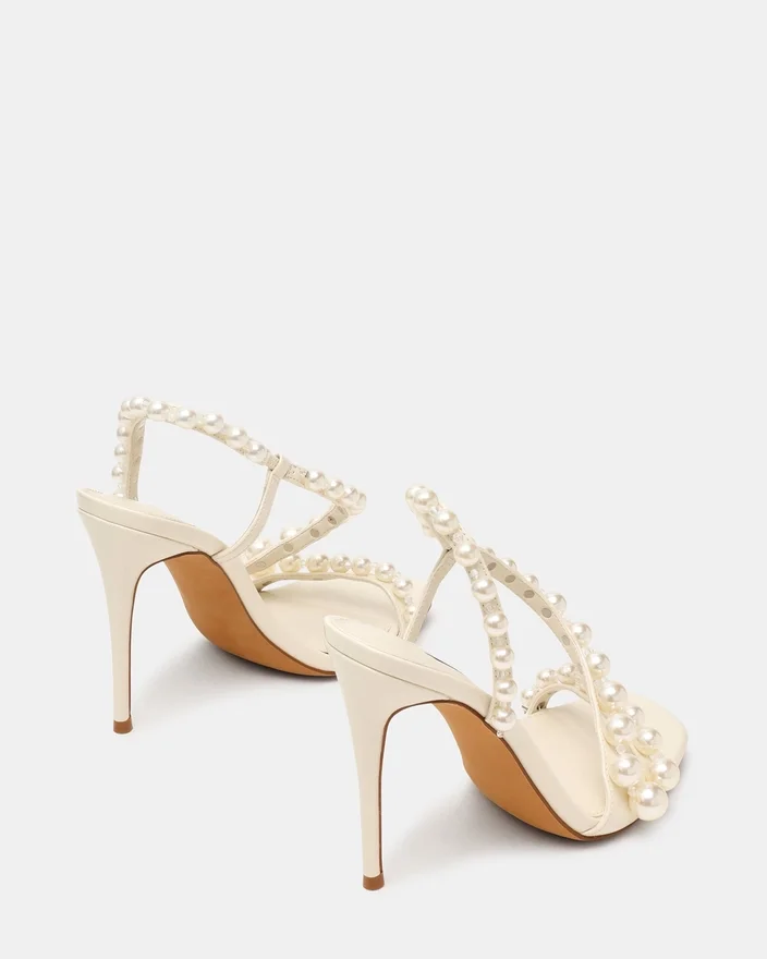 Lyft din stil med Nylie White, med en elegant design med fyrkantig tå och remmar samt en smal stilettklack prydd med utsökta dekorationer. Denna sofistikerade silhuett kombinerar elegans och glans, perfekt för att göra intryck vid alla tillfällen. De fina remmarna säkerställer en säker passform samtidigt som de framhäver din fot, vilket ger både charm och självförtroende i varje steg.