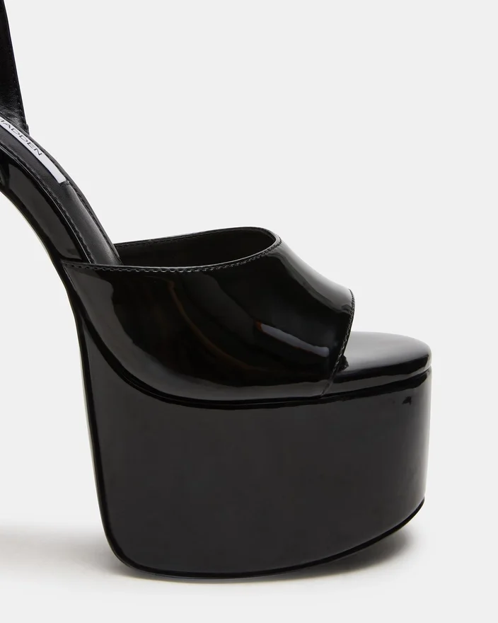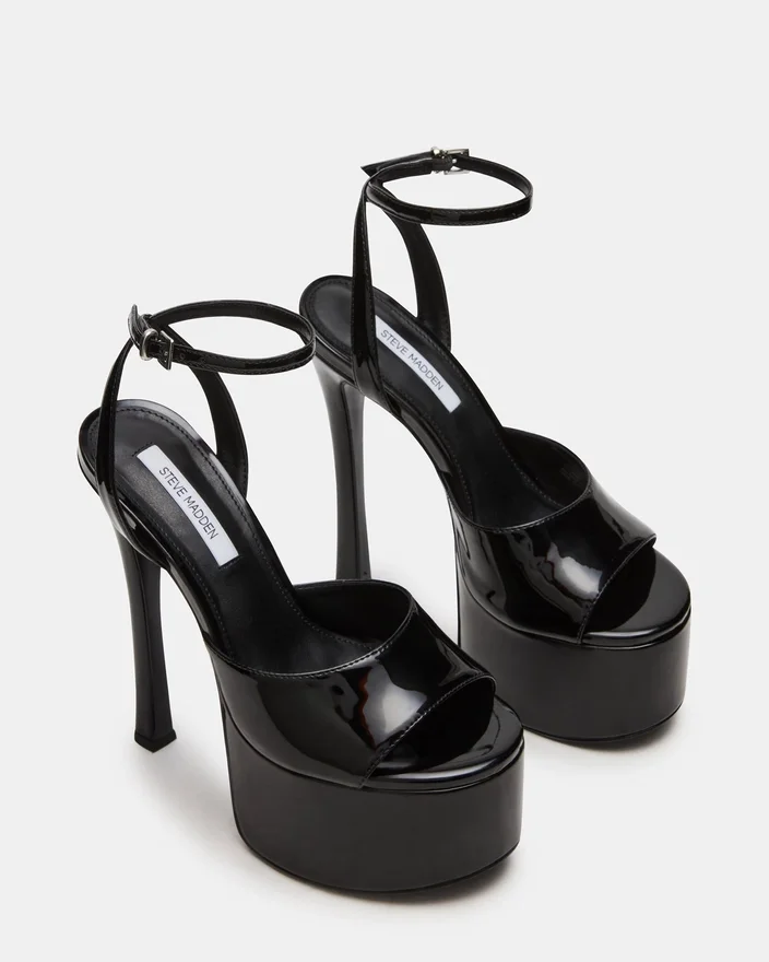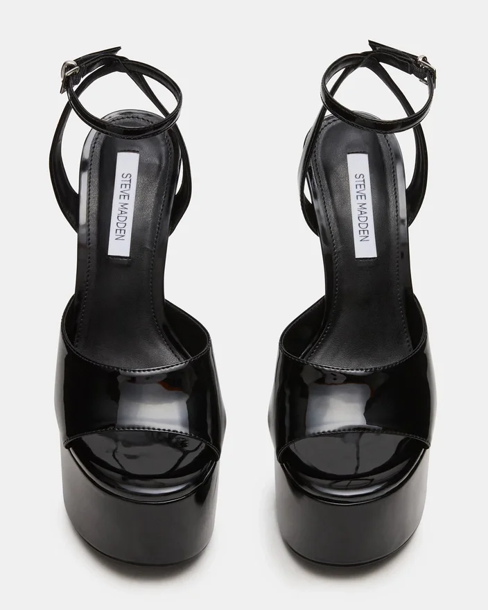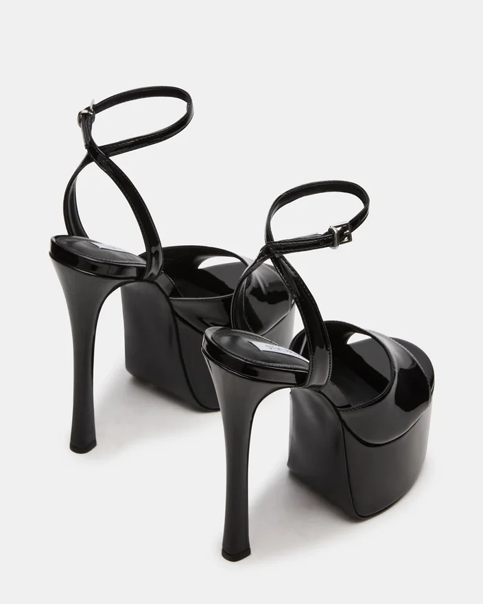 Olyssia Black utstrålar sofistikerad elegans med sin eleganta stilettklack och säkra ankelrem, vilket ger både raffinerad estetik och praktisk stabilitet. Denna plattformssilhuett höjer din gång medan den strukturerade remmen säkerställer en säker och trygg passform hela dagen.