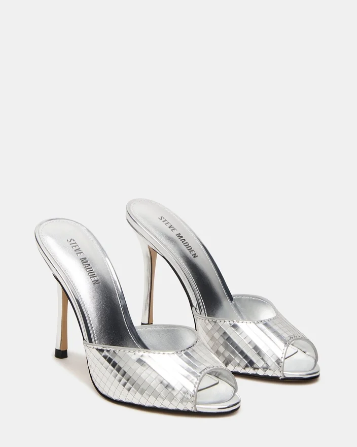 Priya-sandalen kombinerar en smal stilettklack med en retroinspirerad peep toe-design på remmen framtill.
