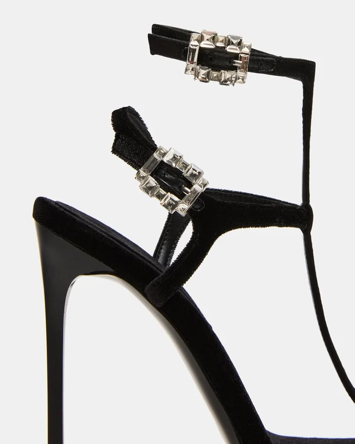 Salma Black Multi har en elegant stilettklack som lyfter din stil med elegans. Dess remdesign och säkra ankelrem ger både charm och stabilitet, medan den öppna tån tillför en touch av sofistikation som är perfekt för alla formella tillfällen eller en utekväll. Genom att kombinera raffinerat hantverk med modern estetik erbjuder dessa klackskor en självsäker, polerad look.