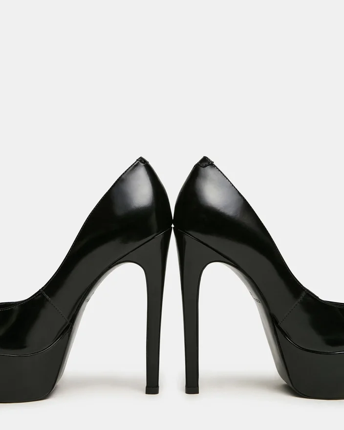 Silene Black Leather Platåskor erbjuder sofistikerad stil med arkitektonisk precision. Denna stilettpump har en upphöjd platåskor som framhäver benlinjen samtidigt som den ger stabilitet och komfort. Den strömlinjeformade silhuetten passar enkelt till allt från skräddarsydda byxor till aftonkläder, vilket gör den till ett oumbärligt tillskott i varje kräsen garderob. Ett tidlöst val för dem som uppskattar raffinerat hantverk inom skomakeri.