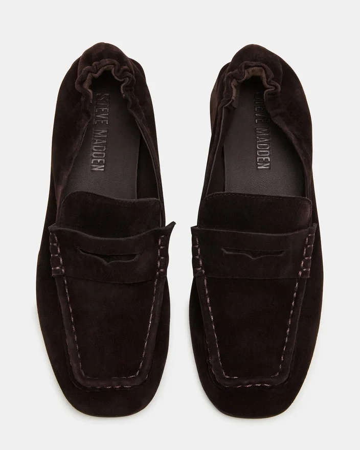 Estee Brown Suede Loafer har en raffinerad design med klack och fyrkantig tå, som kombinerar modern stil med skickligt hantverk. Den mockafärgade ytan ger en subtil struktur, medan den strukturerade klackskorna ger både elegans och stöd. Denna loafer är idealisk för yrkesverksamma som söker en sofistikerad men bekväm sko som lyfter vilken outfit som helst med en modern touch.