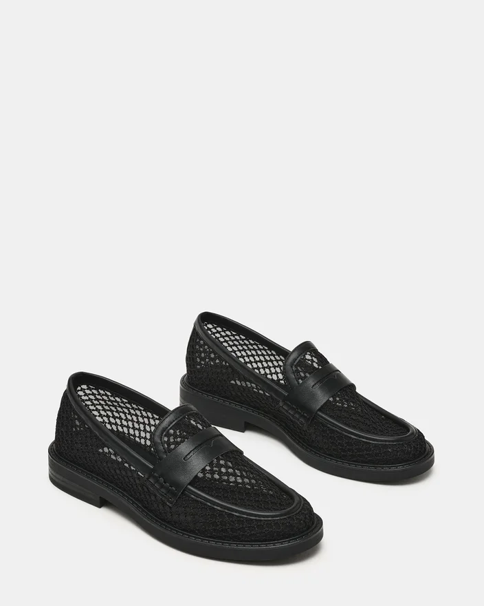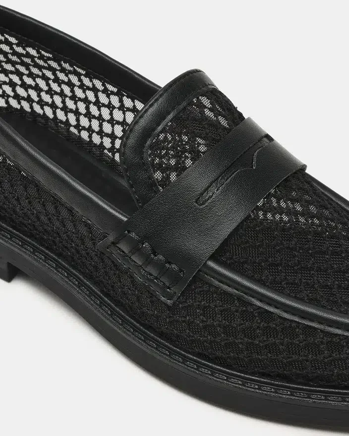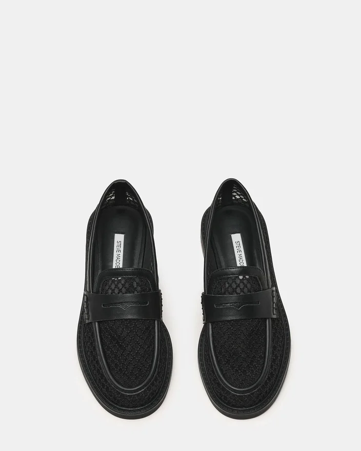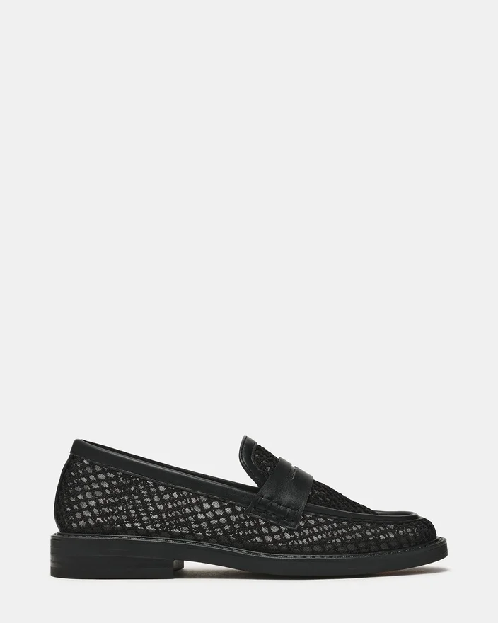 Uppgradera din skogarderob med Madison Black Mesh Loafer. Denna stilfulla sko är tillverkad av lyxiga material och ger en touch av elegans till vilken outfit som helst. Känn komfort och klass med varje steg.