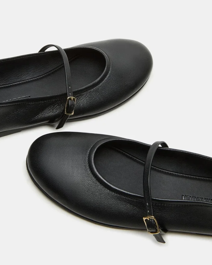 Upplev stil och komfort med Besette Black Leather Mary Jane Ballet Flat. Dessa ballerinaskor är designade med rund tå och ger en chic och mångsidig look till alla outfits. Njut av den perfekta blandningen av mode och funktion med dessa klassiska ballerinaskor.